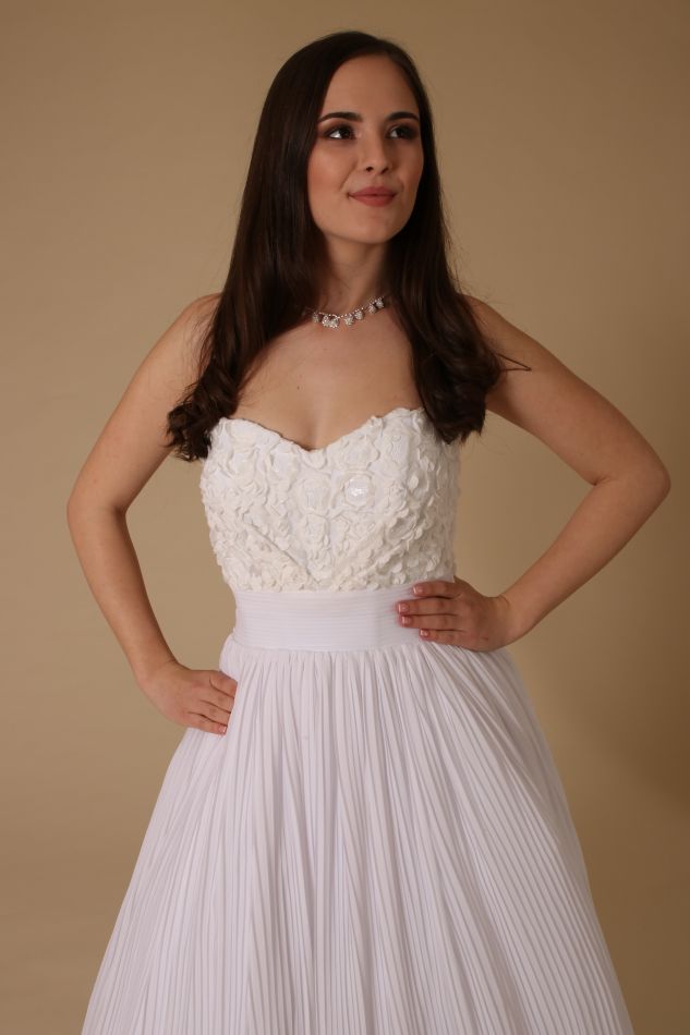 Szalonunkban csak vadonatúj esküvői ruhákat kínálunk eladásra. Áraink eladási árak, melyek tartalmazzák a ruhát, az abroncsot, egy alsószoknyát, és a menyasszonyi ruha méretre készítését/méretre igazítást. A menyasszonyi ruhát igény szerint elkészítjük fehér, csont vagy krém színben is. Mindegyik ruhánk kérhető uszályos változatban is, ennek feláráról kérem, érdeklődjön elérhetőségeinken. Ízlés szerint az alapanyagok, díszítések megváltoztathatóak. A ruha felsőrésze kérhető cipzár-fűző vagy V-betétes –fűzős variációban is. Ha teheti, keressen fel minket személyesen is, szívesen segítünk a megfelelő menyasszonyi ruha, a legideálisabb fazon és a legtökéletesebb esküvői kiegészítők megtalálásában. Saját modelljeink mellett bármilyen egyéni elkép