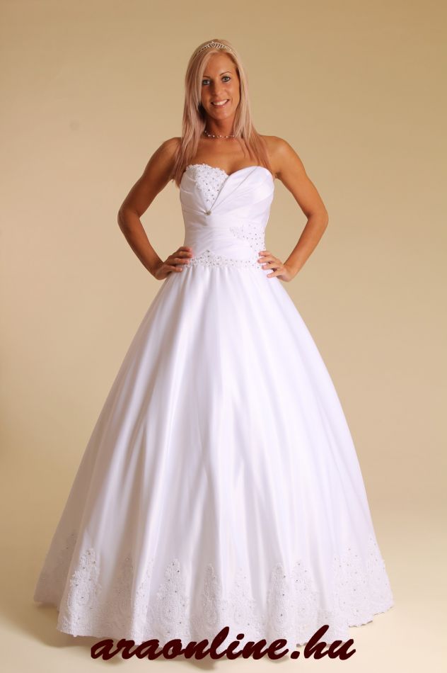Szalonunkban csak vadonatúj, saját tervezésű és készítésű esküvői ruhákat kínálunk eladásra. Áraink eladási árak, melyek tartalmazzák a ruhát, az abroncsot, egy alsószoknyát, és a menyasszonyi ruha méretre készítését/méretre igazítását. A menyasszonyi ruhát igény szerint elkészítjük fehér, csont vagy krém színben is. Mindegyik ruhánk kérhető uszályos változatban is, ennek feláráról kérem, érdeklődjön elérhetőségeinken. Ízlés szerint az alapanyagok, díszítések megváltoztathatóak. A ruha felsőrésze kérhető cipzár-fűző vagy V-betétes fűzős variációban is. Ha teheti, keressen fel minket személyesen is, szívesen segítünk a megfelelő menyasszonyi ruha, a legideálisabb fazon és a legtökéletesebb esküvői kiegészítők megtalálásában. Saját modelljeink mellett bármilyen egyéni elképzelést is megvalósítunk.